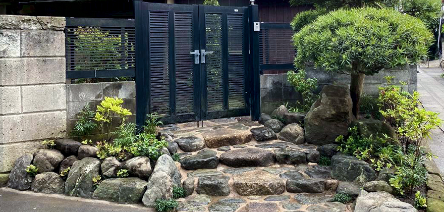 石と緑を知り尽くし、造園技術を磨いたからこそ実現できる、自然素材を活かした外構・エクステリア工事。伝統的な石積み技法から現代工法まで幅広く対応する職人技術で、機能性とデザイン性を両立させます。経年変化を見越した素材選びと植栽計画との連携により、時間とともに美しさを増し、住まい全体の価値を高める外構を創出します。