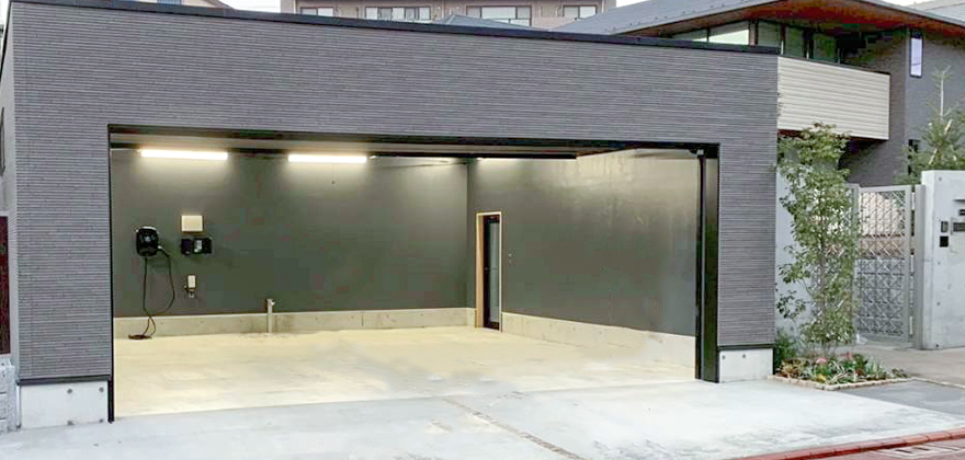 ガレージの建設・アルミ・スチール製カーポートの設置。積雪や風荷重を考慮した構造選定と、建物との調和を重視した配置計画を行います。